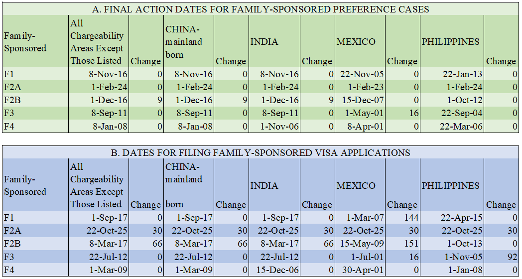 2025 EB2 EB3 Employment-based Family-based green card immigration visa bulletin